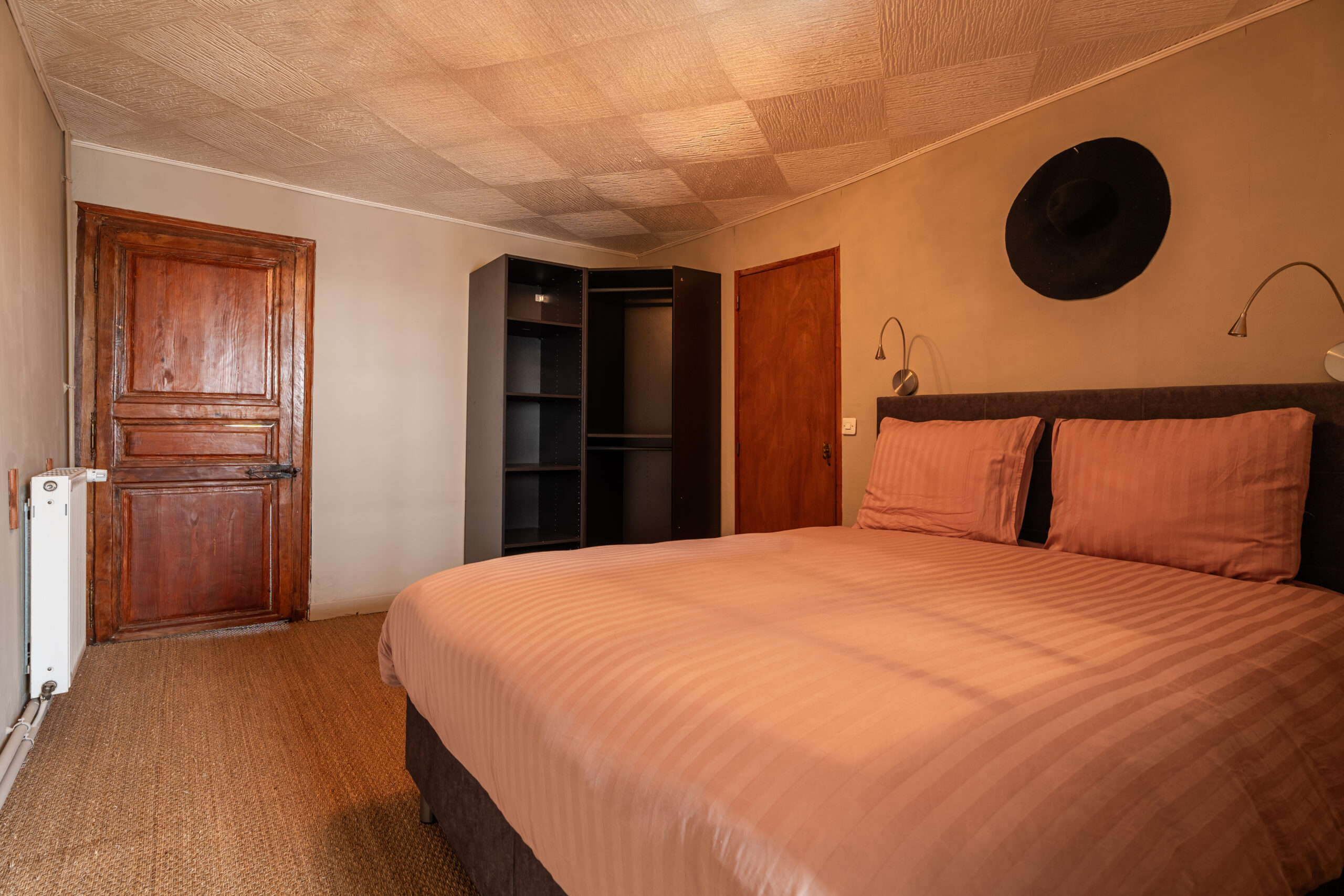 U zult genieten van een comfortabele slaapkamer met een 2 persoons boxspring bed van 1.6 bij 2.0 meter, voorzien van 4 seizoenen donzen dekbedden.