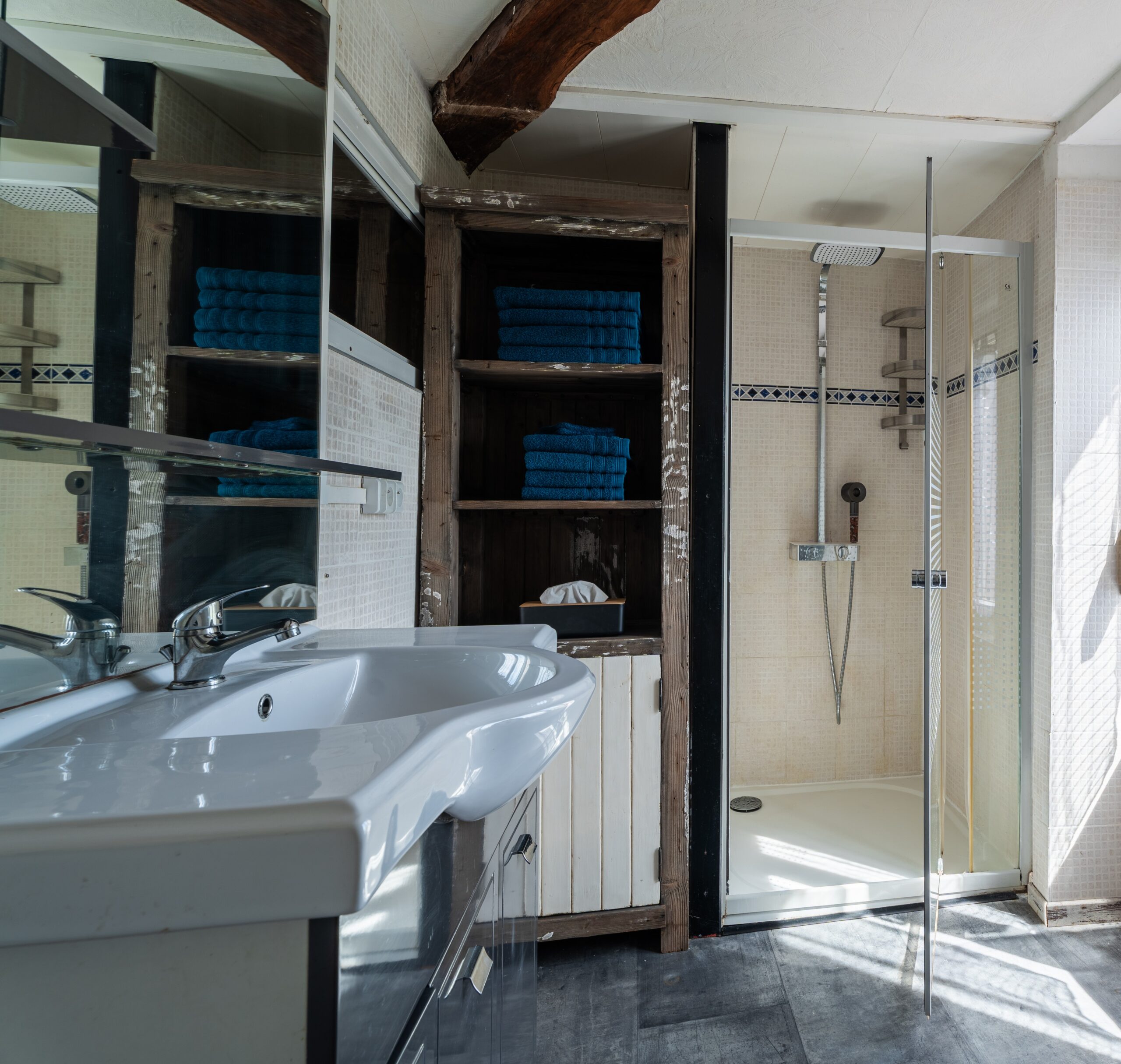 Voorzieningen: apart toilet, een wastafel, inloopdouche.